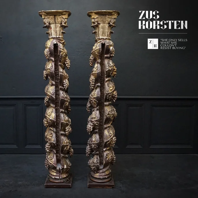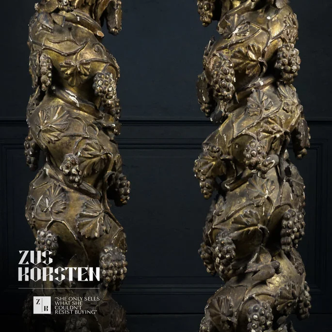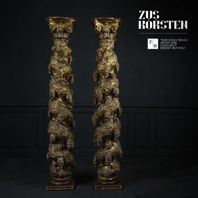 Exceptional pair of hand-carved gilt swirled Solomonic columns.