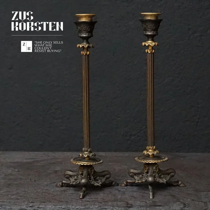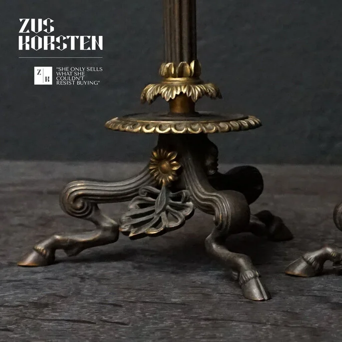 Two 19th Century French Bronze Partially Gilt Candlesticks on Hoofed Faun Feet