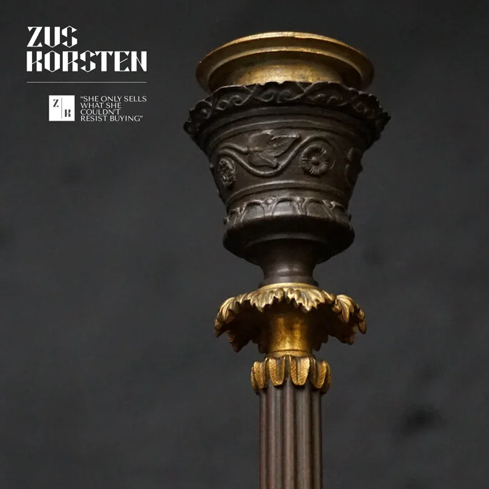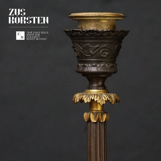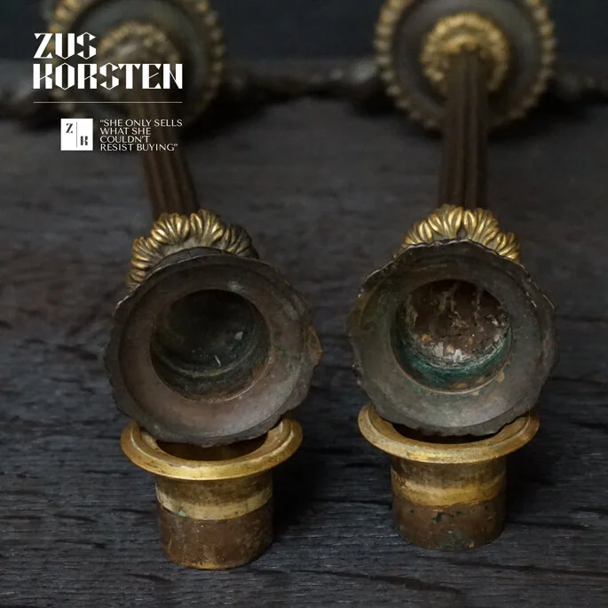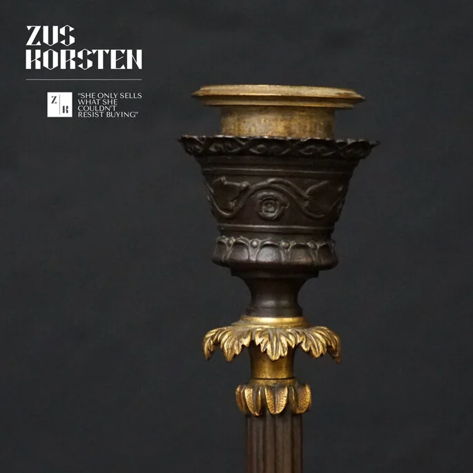 The candle inserts and floral decorations are (fire) gilt or ormolu.
