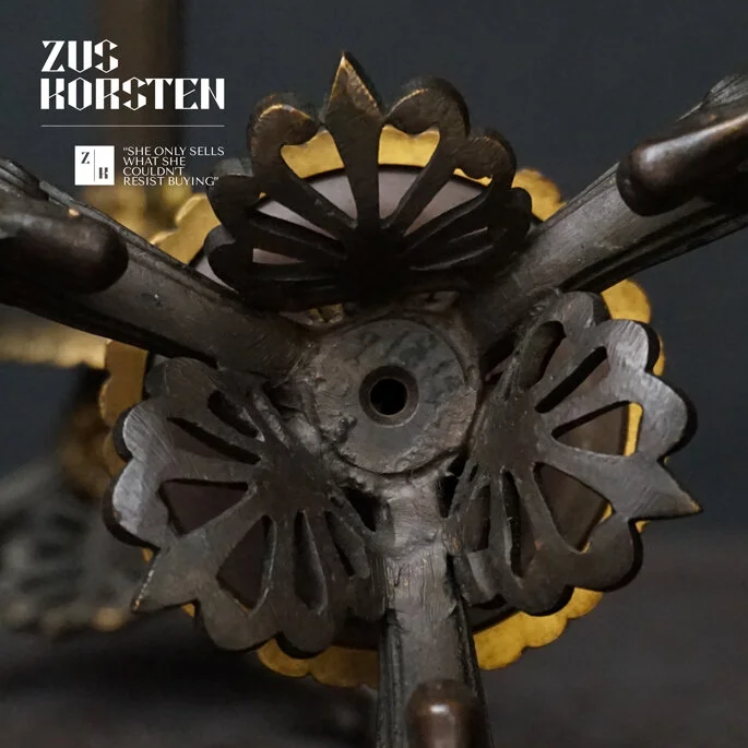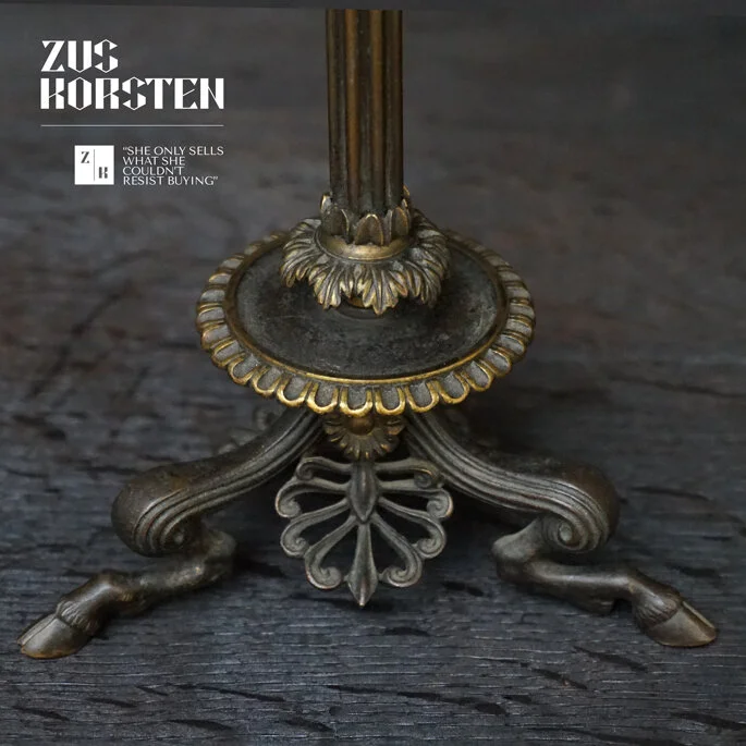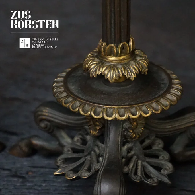 Cast in bronze, adorned with floral and acanthus leaf motif.