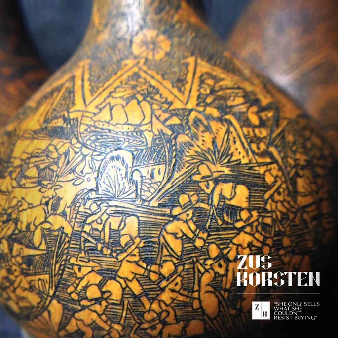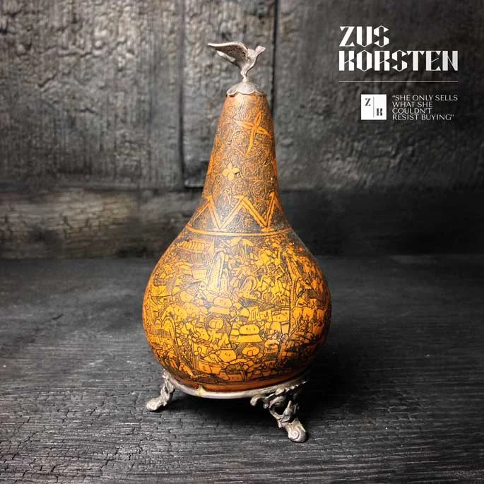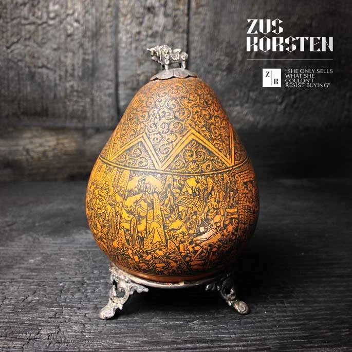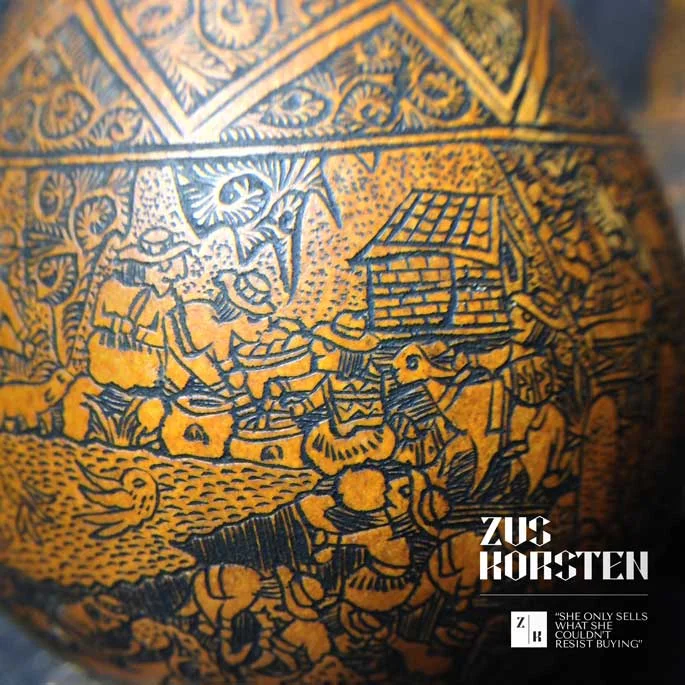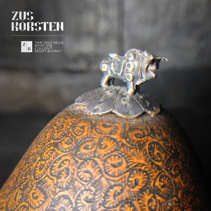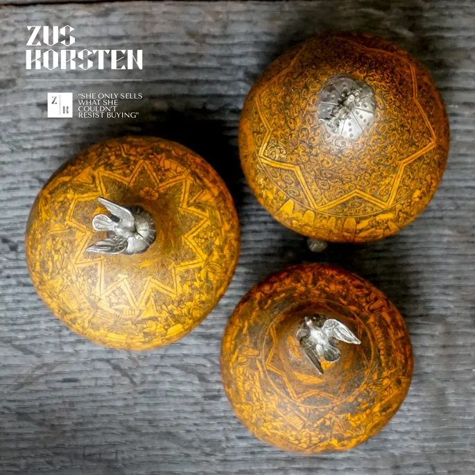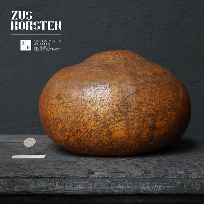 The owner did not speak any English or Dutch for that matter. I really liked the carving and the quality of the gourds a lot but the owner refused to let them go. He didn't know the persuasive power of Zus Korsten yet. So after a long verbal but charming fight I paid the man and took my prizes home. I kept them in a closed cabinet for a while. What makes them special are the ornaments on top and the little legs on the bottom. They are no bigger than my iPhone. I am willing to let them go for 450 dollar a piece. Without a fight.