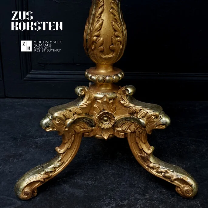 Midcentury Italian Marble Top and Carved Giltwood Tripod Eagle Head Gueridon