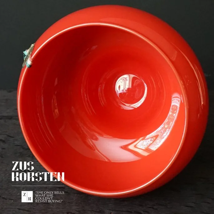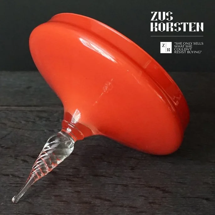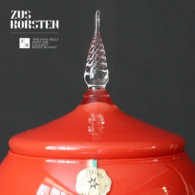 Large MCM Mid-Century-Modern Italian VNC Opalina di Vinci 2-layers cased glass candy or apothecary Jar in the most peculiar subdued bright tomato red colour I've ever seen.